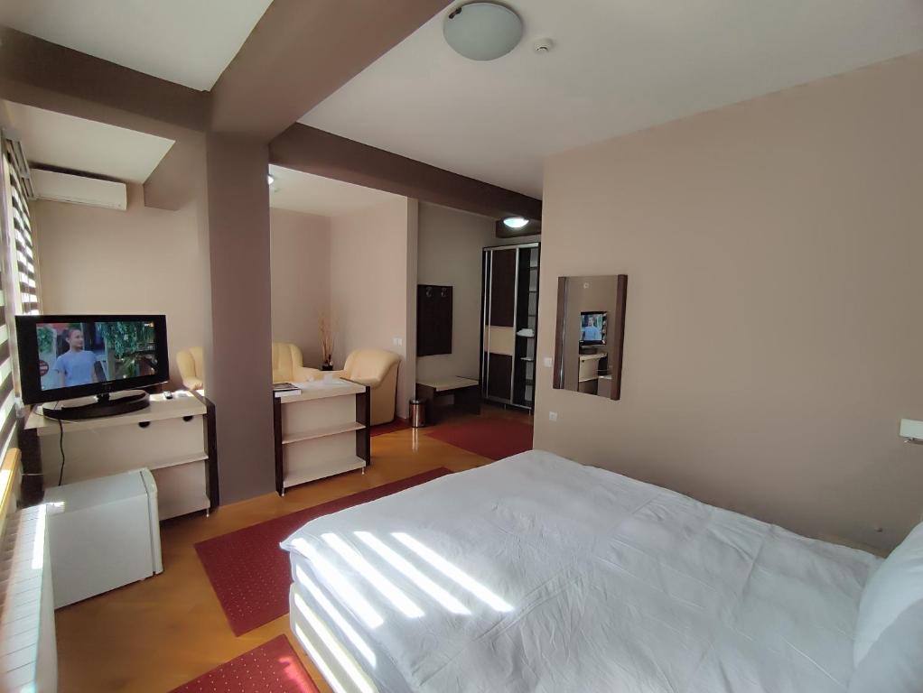 "This is a brilliant hotel, beautifully presented and a great place to stay in Skopje. My room (number 34) consisted of a bedroom, a bathroom and a large living area containing 3 comfortable leather seats and a writing desk. The young woman at reception was courteous and pleasant. The included breakfast was a bonus."