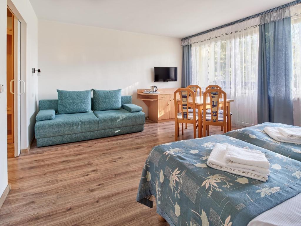 "Spędziliśmy z rodziną długi listopadowy weekend w tym obiekcie i ogólnie jesteśmy bardzo zadowoleni. Największym atutem jest świetna lokalizacja — plaża znajduje się dosłownie kilka kroków od hotelu, co bardzo ułatwia spontaniczne spacery czy szybkie wyjścia z dziećmi. Dużym plusem jest również możliwość wykupienia wyżywienia na miejscu, co okazało się wygodne, zwłaszcza przy chłodniejszej listopadowej pogodzie. Obsługa była miła i pomocna, choć pan z recepcji mógłby być nieco bardziej wyluzowany i częściej się uśmiechać — czasem jego powaga wprowadzała zbyt oficjalny nastrój. Od siebie dodam, że sam obiekt sprawia wrażenie zadbanego i prowadzonego z sercem. Atmosfera jest spokojna, idealna na rodzinny odpoczynek, a okolica sprzyja relaksowi. To miejsce ma potencjał, by stać się jednym z naszych stałych punktów na krótkie, sezonowe wypady."