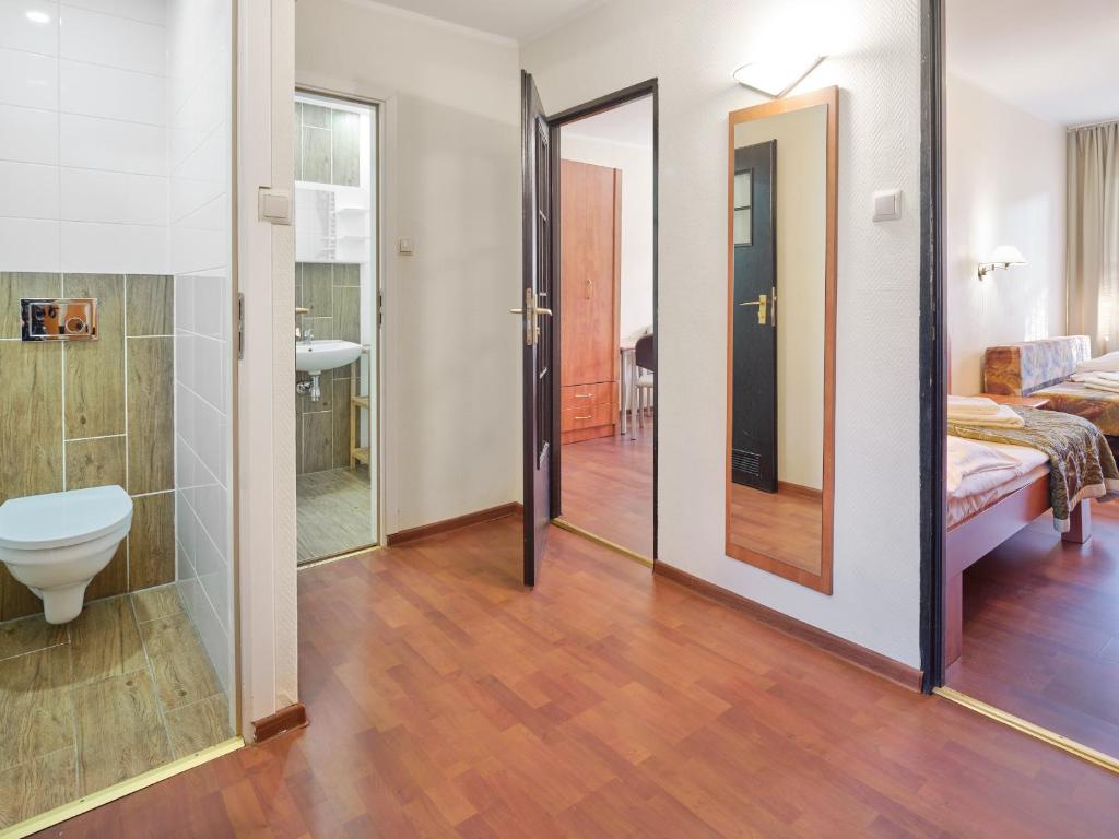 "w pokoju brakowało jakiegokolwiek stoliczka ,tak samo na balkonie. dobrym rozwiązaniem dla osób ,które mają tylko śniadania byłaby lodówka np na korytarzu. przy upale trudno cokolwiek przetrzymać w pokoju. w łazience jakiś kubeczek do szczoteczek też by się przydał"