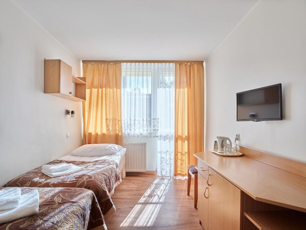 With 150 metres from the sandy beach and surrounded by a pine forest, the Zdrowotel Łeba offers massage treatments and barbecue facilities. All rooms have free internet and TV. Each room at the Zdrowotel come with an electric kettle and a balcony. Some have a refrigerator and a seating area. A buffet breakfast is served every morning in the dining room. Special diet menus are available upon request. Front desk staff can assist guests 24 hours a day and arrange shuttle services. A safe children’s playground is provided on site. Zdrowotel Łeba is located 2,5 km from the centre of Łeba as well as from the Serbsko Lake. Łeba Railway Station is 3 km away.