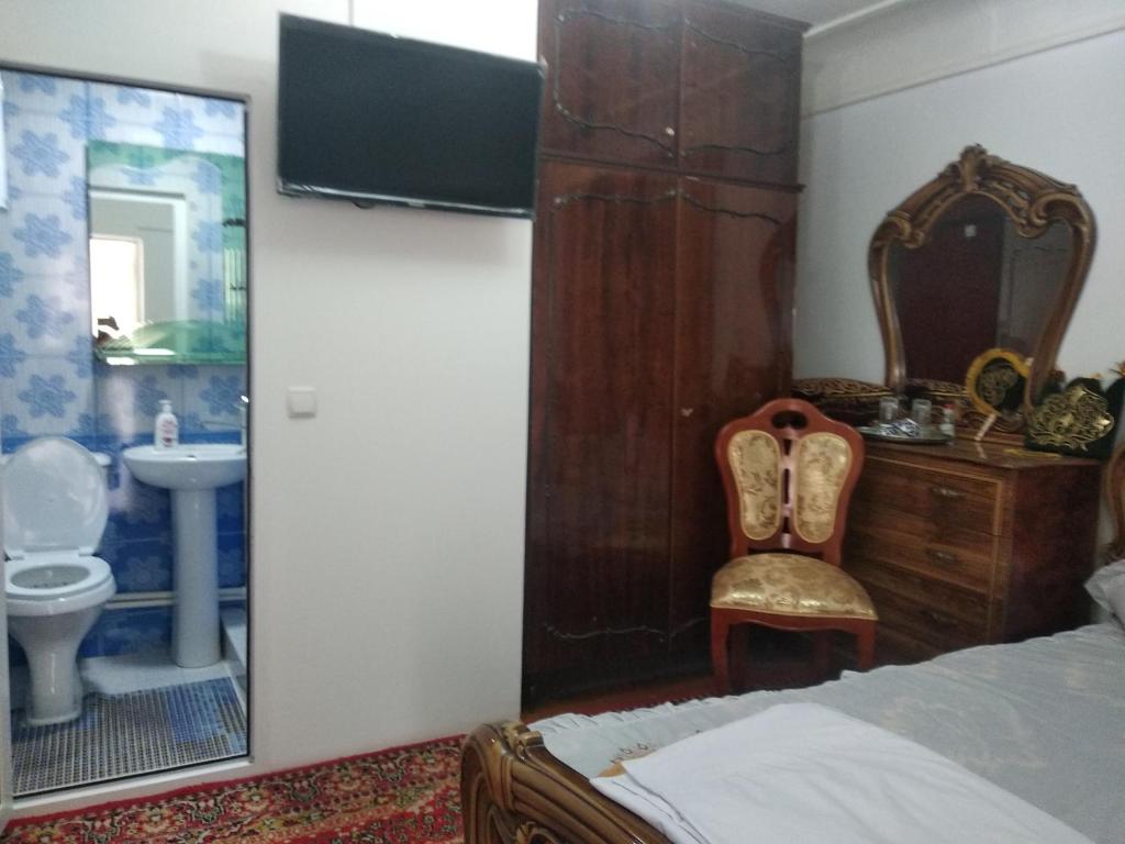 "Friendly uzbek couple run this tiny guest house. It's a simple and rustic affair but comfy and in a quiet lane. It's all I needed and very happy I stayed here. Breakfast typically uzbek. Fruit, bread, tea and eggs. I would stay here again. Google translate useful, as I speak no Russian, or uzbek. being English!!"